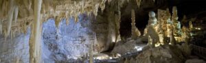 В Апеннинских горах в регионе Марке расположены пещеры, где можно увидеть одни из самых живописных в мире образцов сталактитов и сталагмитов. Протяжённость пещер — почти 13 км, а маршрут по ним для посетителей составляет около 1,5 км. Одной из самых впечатляющих пещер считается Зал свечей, со свода которой свисают тысячи кремовых сталактитов. В Зале Бесконечности сталактиты и сталагмиты образуют целые колонны, напоминающие детали готической архитектуры, а в пещере Святого пристанища находится капелла XI века Санта-Мария-дель-Фрасасси. Восьмигранная церковь была выстроена в 1828 году по заказу Папы Льва XII. Добраться до пещер Фрасасси можно на поезде (ж/д линия Анкона-Рим, станция Дженга-Сан Витторе Терме), либо из Римини и соседних городков на автобусе Bonelli Bus; пещеры находятся неподалеку от городка Дженга в 60 км от Анконы и в 135 км от Римини.
